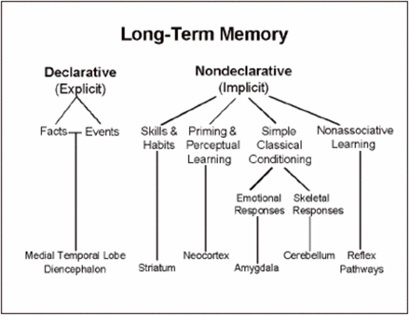 - Procedural memory = used for remembering skills, “muscle memory”