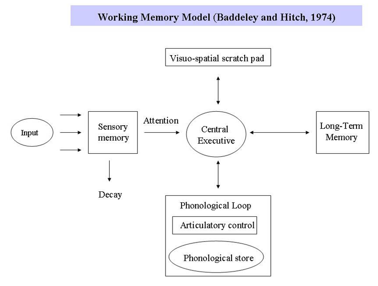 - Working memory = “consciousness”, pulling information from other memory system together, it’s spatial and verbal as well